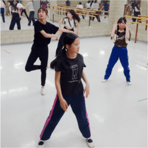 子供のダンスボデイ形成のため、ウオームアップレッスン(ストレッチやリズムムーブメント)を毎回行います。それからダンスエクササイズに入ります。